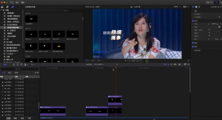 在Motion5里面把字幕做好之后,再打开我们的Final Cut Pro X,点击字幕器,就会看到我们在Motion5里面做好的动态模板啦!在Final X里打开一段视频,直接把做好的动态拿来改字就可以使用了,非常的方便。