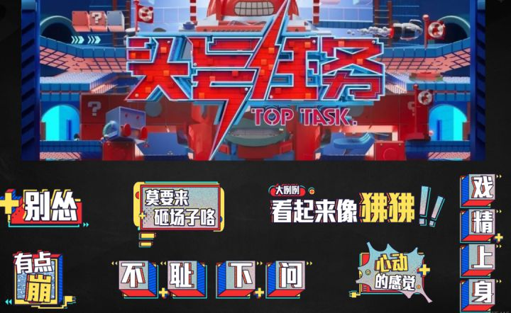 花字幕设计另一类是风格设计,以风格为主导进行设计。例如《挑战吧!太空》的花字设计走的就是机械科技风,使用科技屏质感为底板,主元素采用logo的主形状六边形发散,添加LOGO上的金属感,更贴合节目性质。风格主打简约大气,避免超娱乐化设计,颜色主要采用金属蓝,香槟金,整体提升节目的画面质感。
